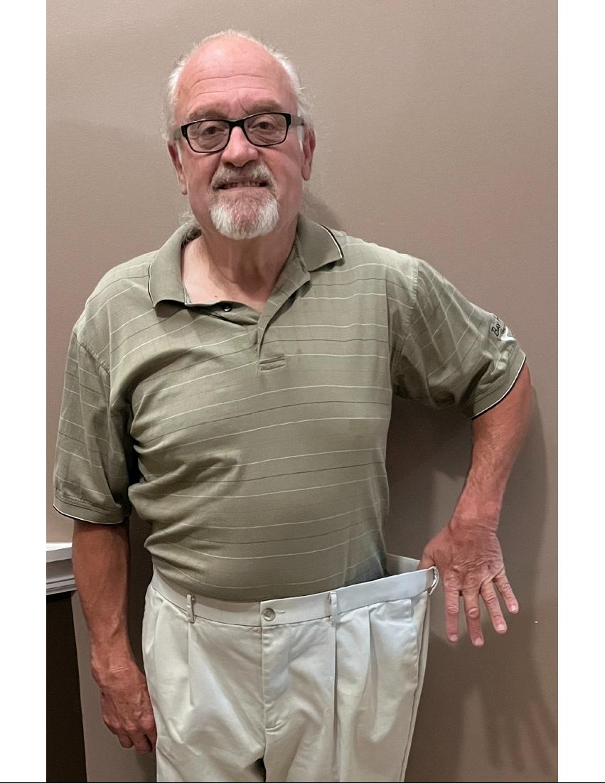 August 2024, me, wearing the largest pair of pants I've ever worn, 40" waist.