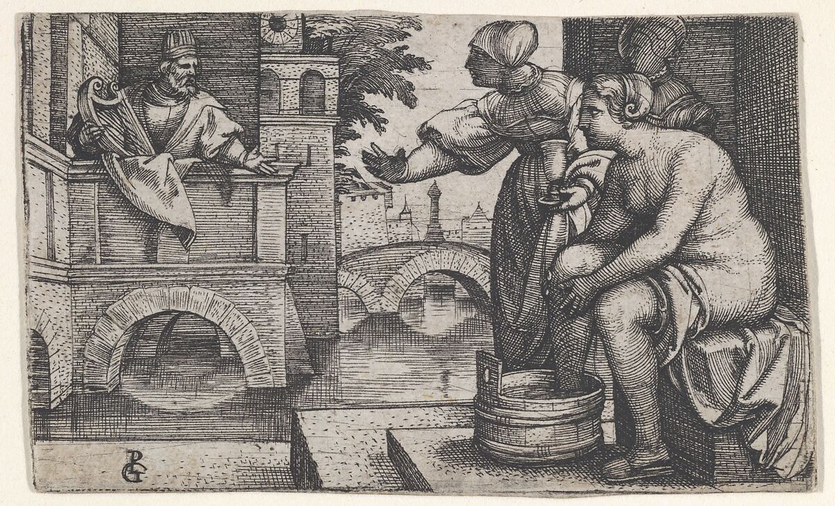 David saw her bathing in her courtyard when Israel's army was out to war.