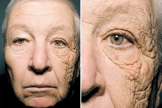 A white Australian truck driver with 28 years of one-sided sun exposure.
